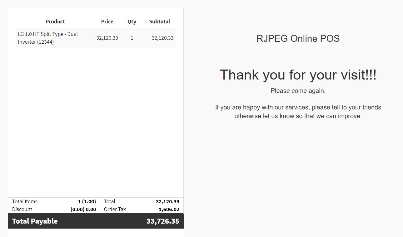 RJPEG Online POS is an online point of sales application that can be used by small to medium business owners to process their sales transactions at the point where goods or services are sold to customers. Its features include managing of products and apply corresponding taxes, barcode and label printing, managing customer details, hold transaction option, apply discount, etc. Reports are also available such as daily sales, monthly sales, payments report, products report, etc.